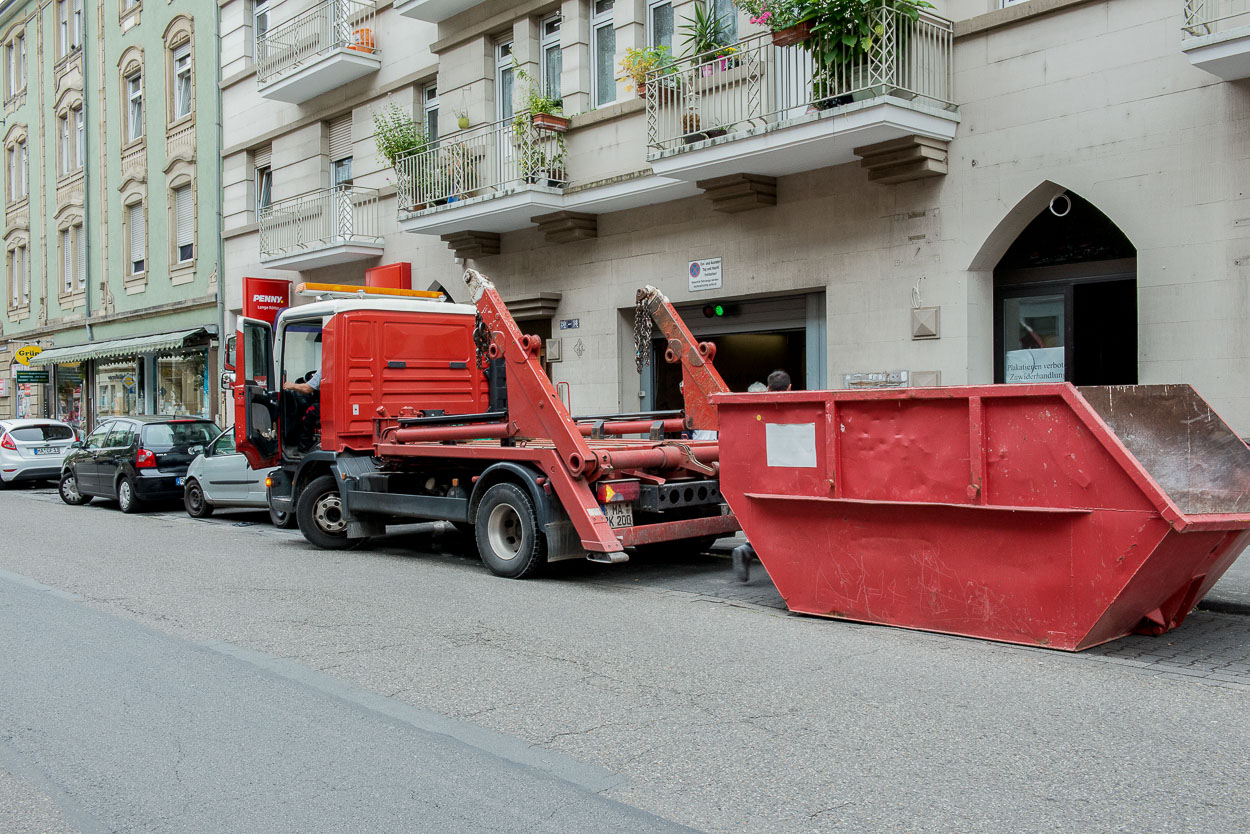 Absetzen eines Containers in der Innenstadt von Mannheim